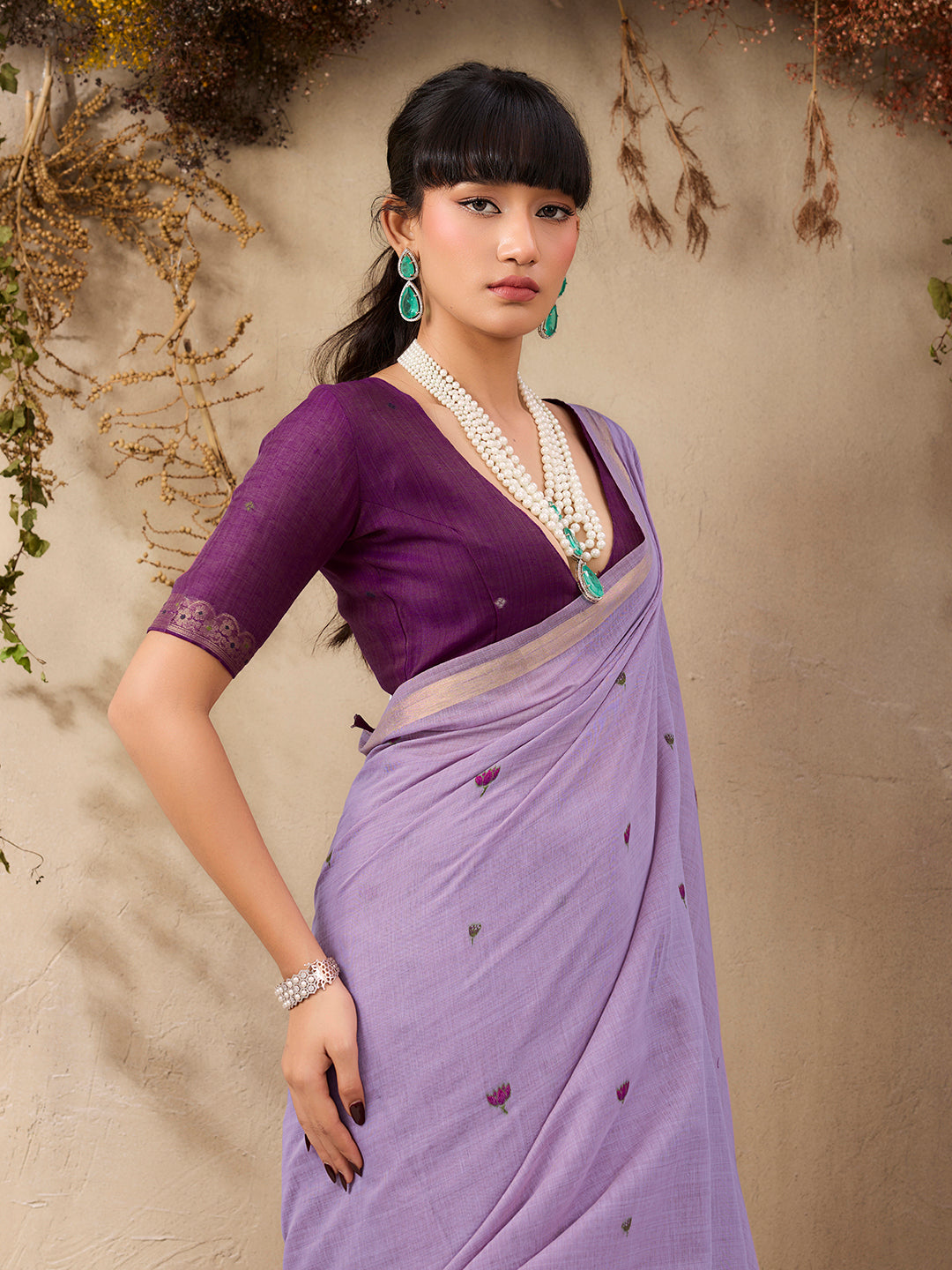 Purple Munga Cotton Handloom Weaving Saree With Blouse Piece 10543