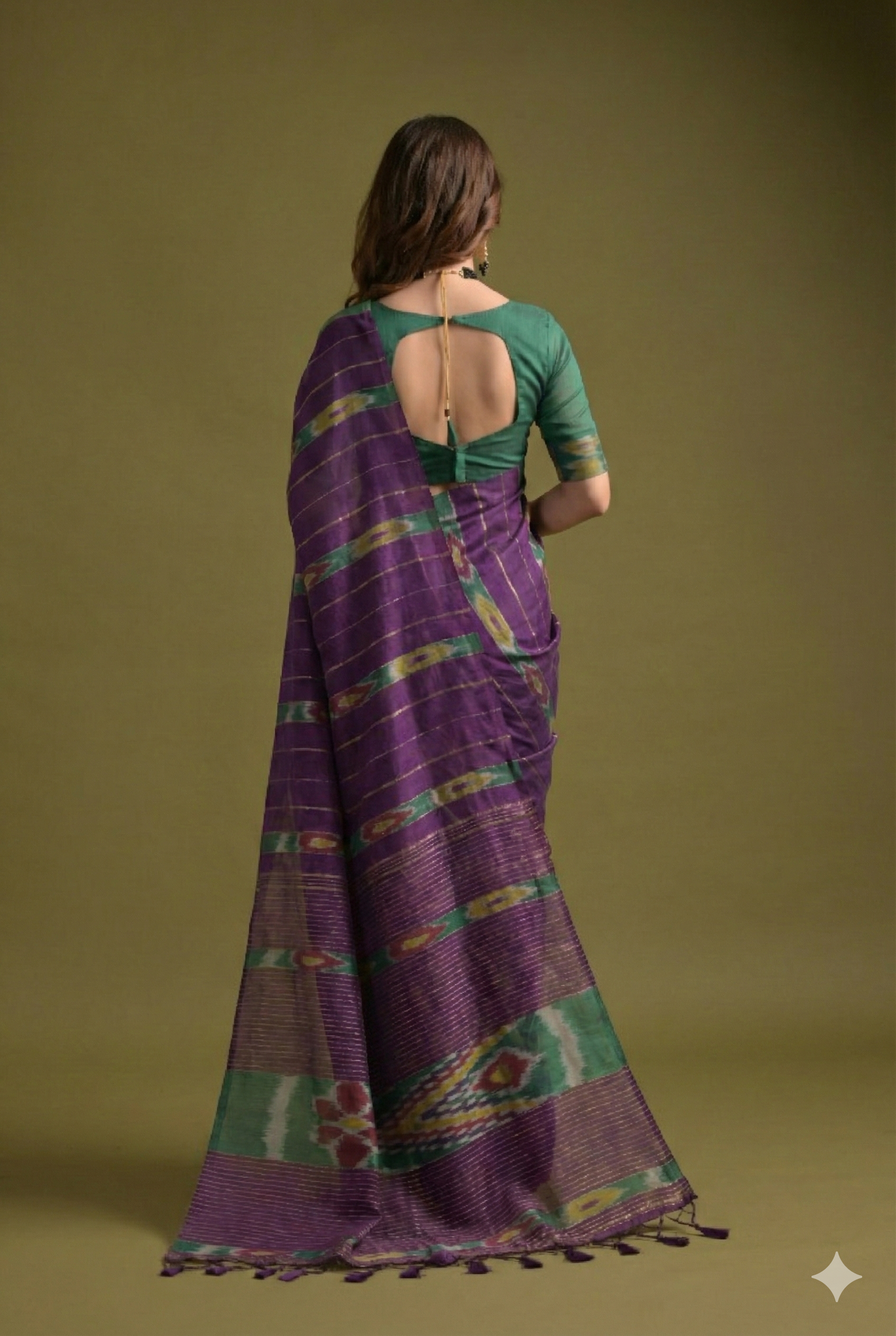 Purple Premium Soft Ikkat Cotton Saree With Traditional Weaving Pattern On Pallu And All Over Weaving Pattern And Fancy Tassels With Running Blouse Piece 19232