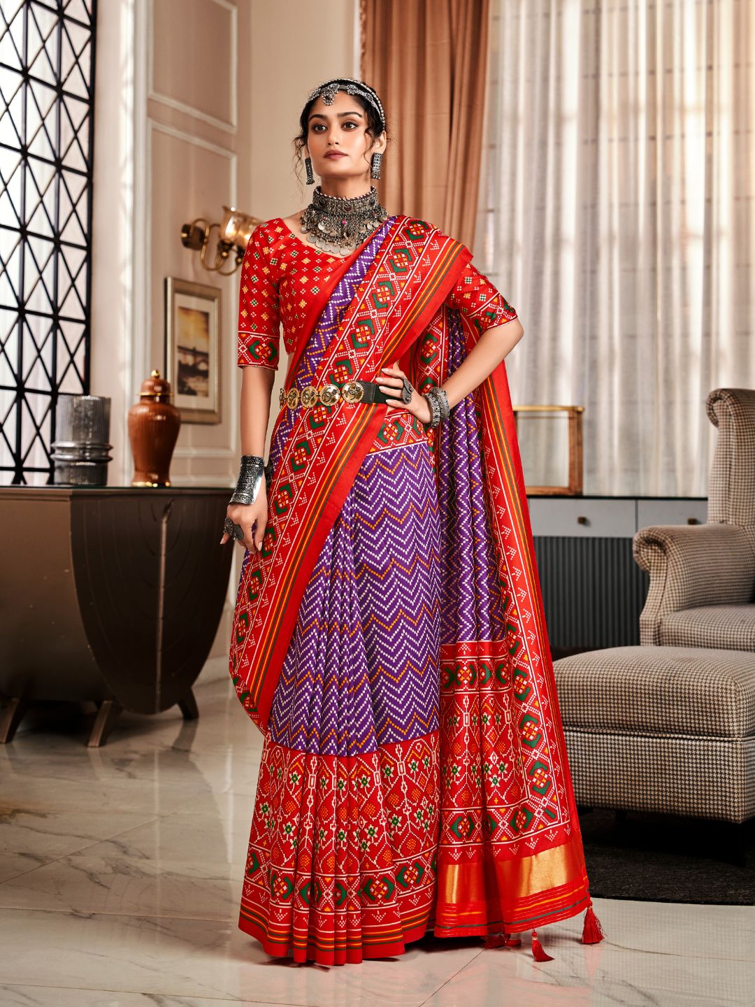 Purple Red Pure Patola Silk Handloom Printed Saree With Blouse Piece 33913