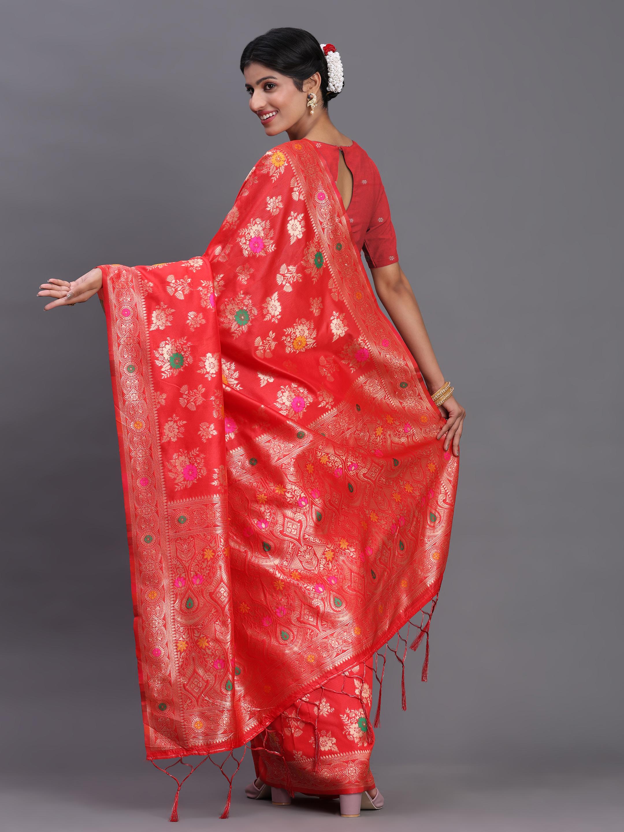 Red Banarasi Silk Saree With Blouse Piece 89332