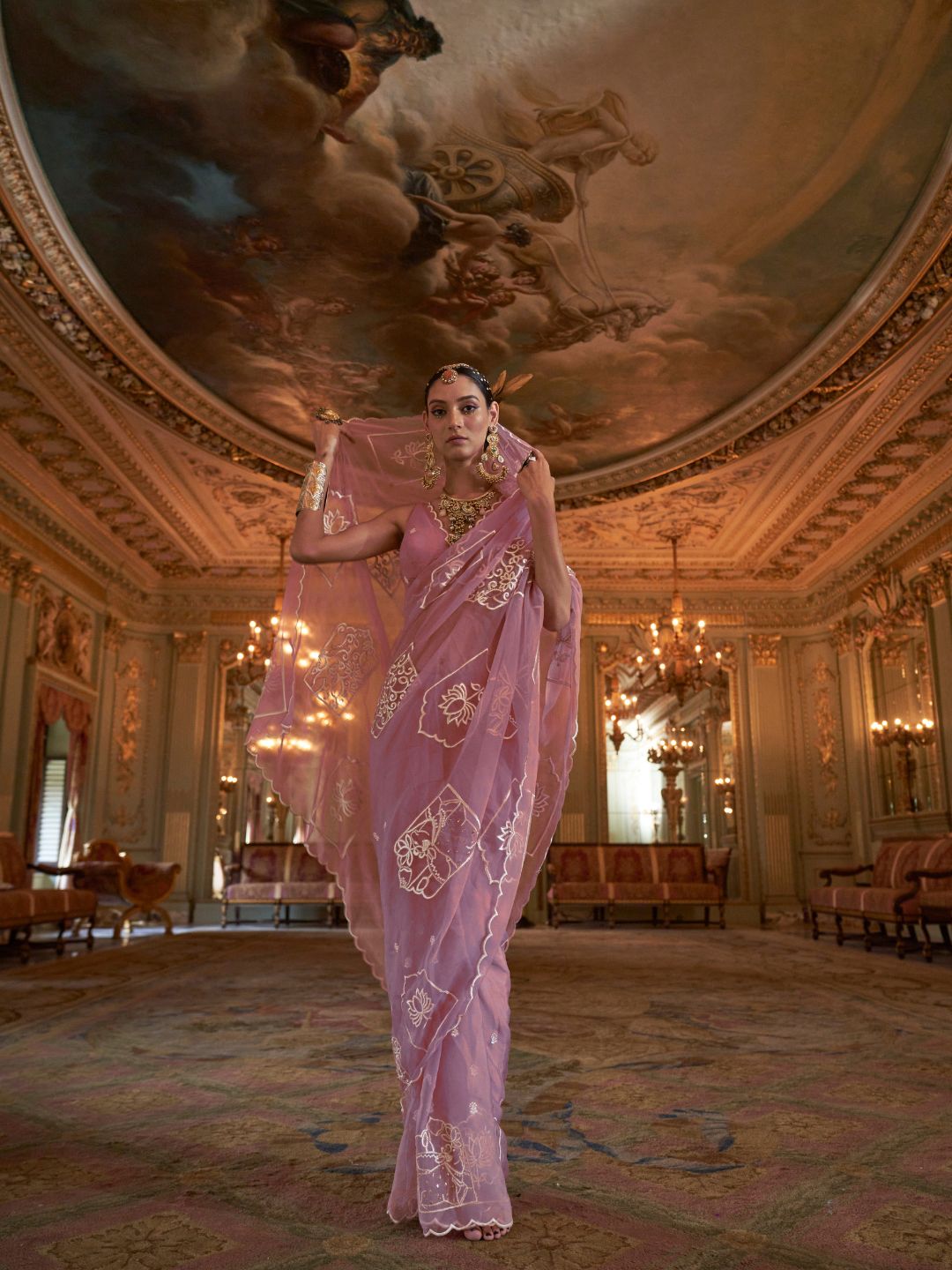 Rubby Chiffon Multi Thread Work Embroidered Saree 20498