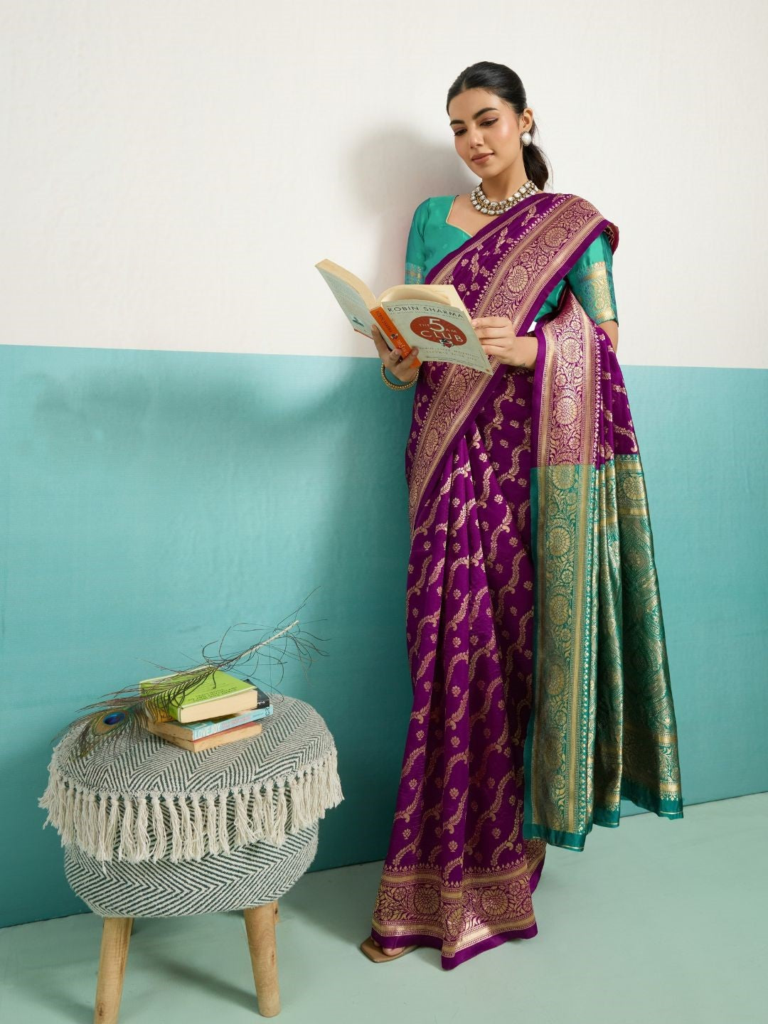 Running Contrast Blouse With Sleeve Patta Banarasi Silk Saree