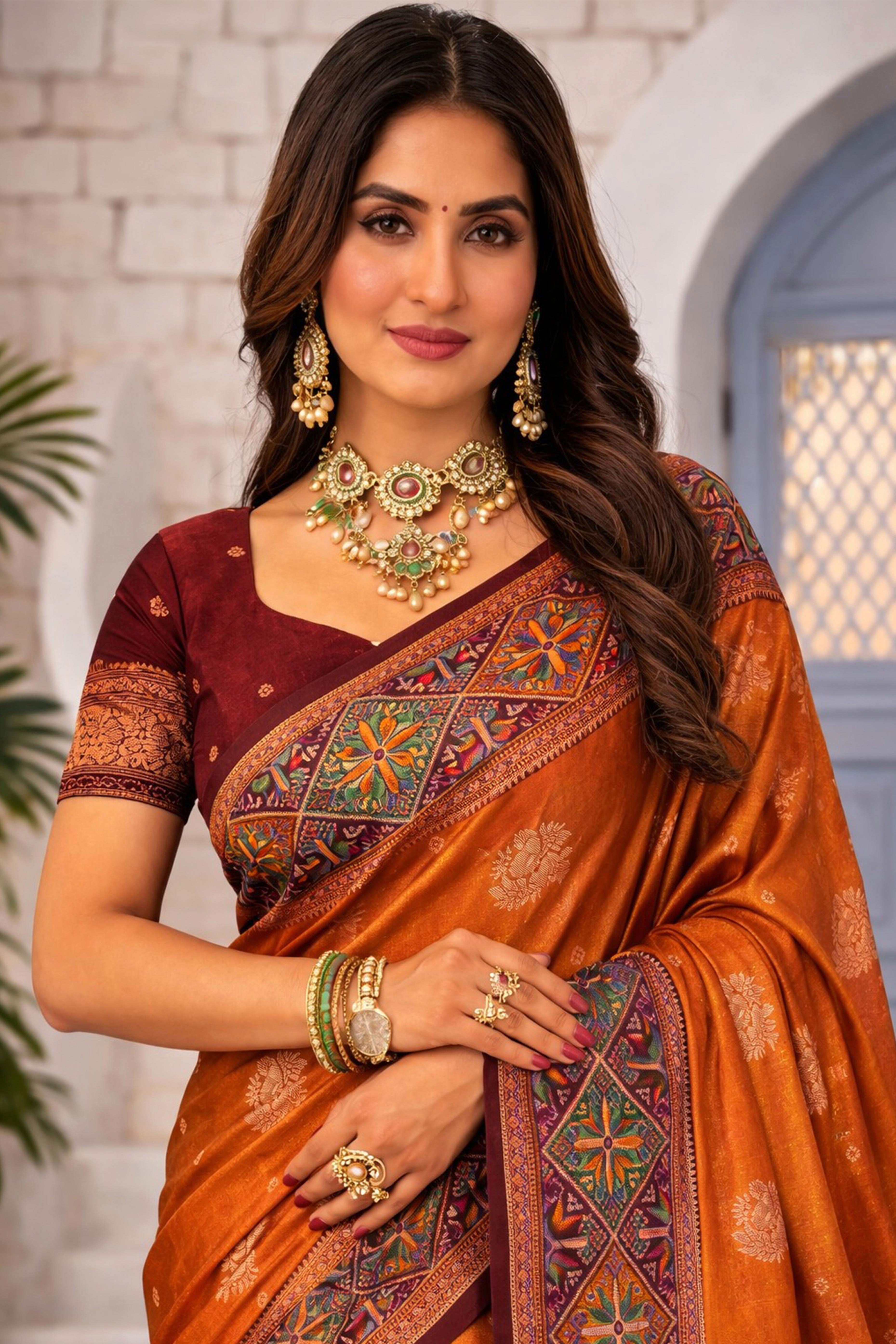 Rust Orange Soft Silk Woven Work Traditional Saree 22682