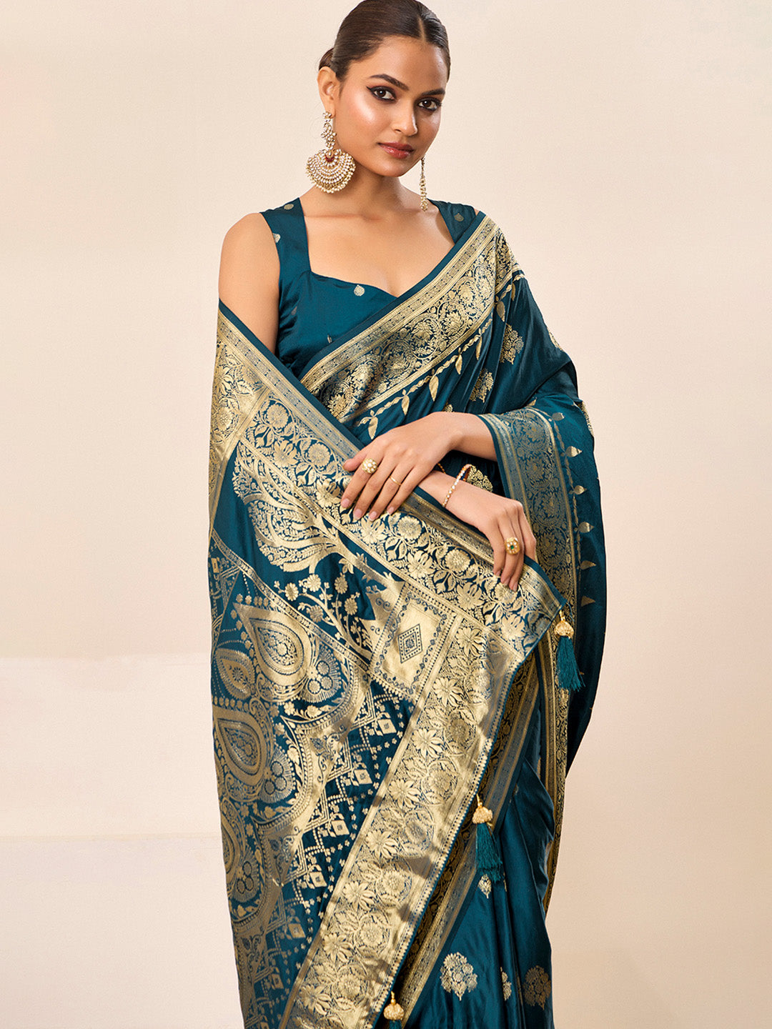 Satin Silk Banarasi Silk Saree With Blouse Piece 13592