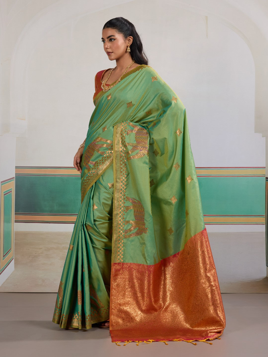 Sea Green Pure Silk Handloom Weaving Saree With Blouse Piece 14709