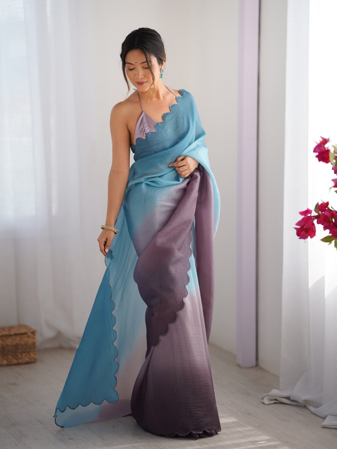 Sky Blue Crunchy Padding Arco Border Lace Saree With Blouse Piece 68325