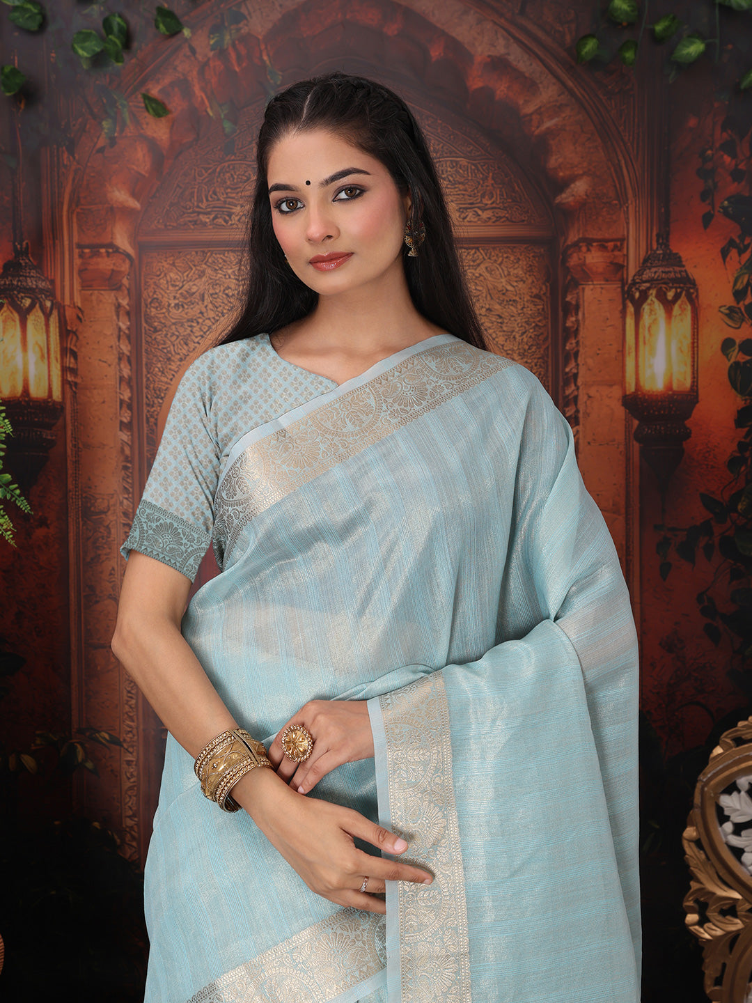 Sky Blue Organza Saree With Blouse Piece 95537