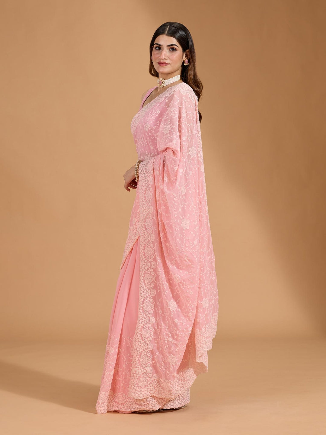 Soft Georgette Fabric With White Thread Embroidered Work With Cutwork Lace Border 72204