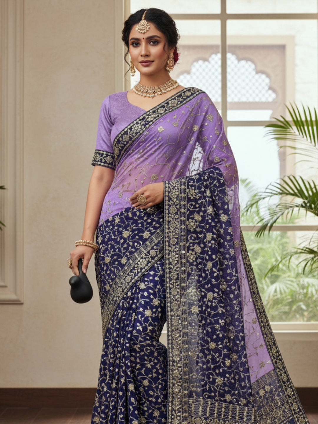 Soft Georgette Padding Fabric On Beautiful 7 Mm Embroidery Heavy Sequence And Thread Work With Lace On Saree 87784