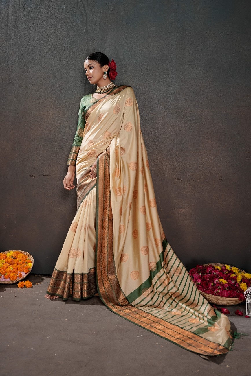 Soft Silk Chitt Palu With Contrast Blouse Weaving Saree 96982