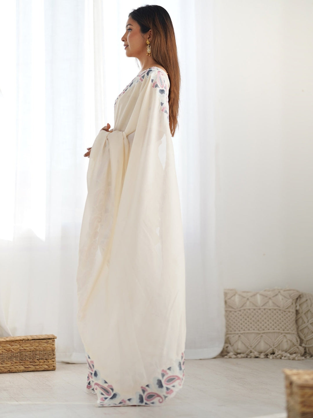 Soft Vichitra Silk With Multi Thread Work With Arc Cutting Border Saree 42705