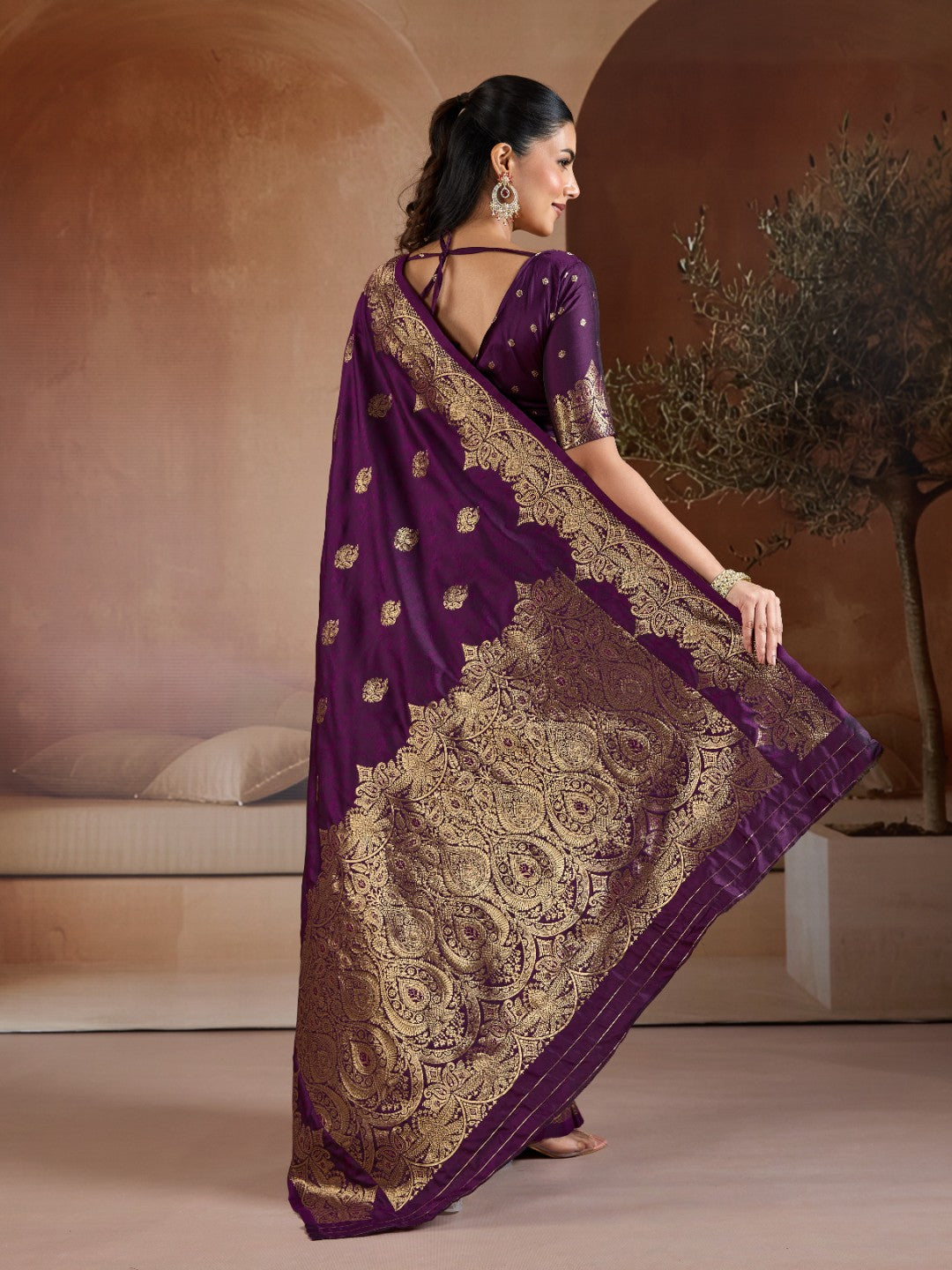 Wine Handloom Weaving Silk Saree With Blouse Piece 18807
