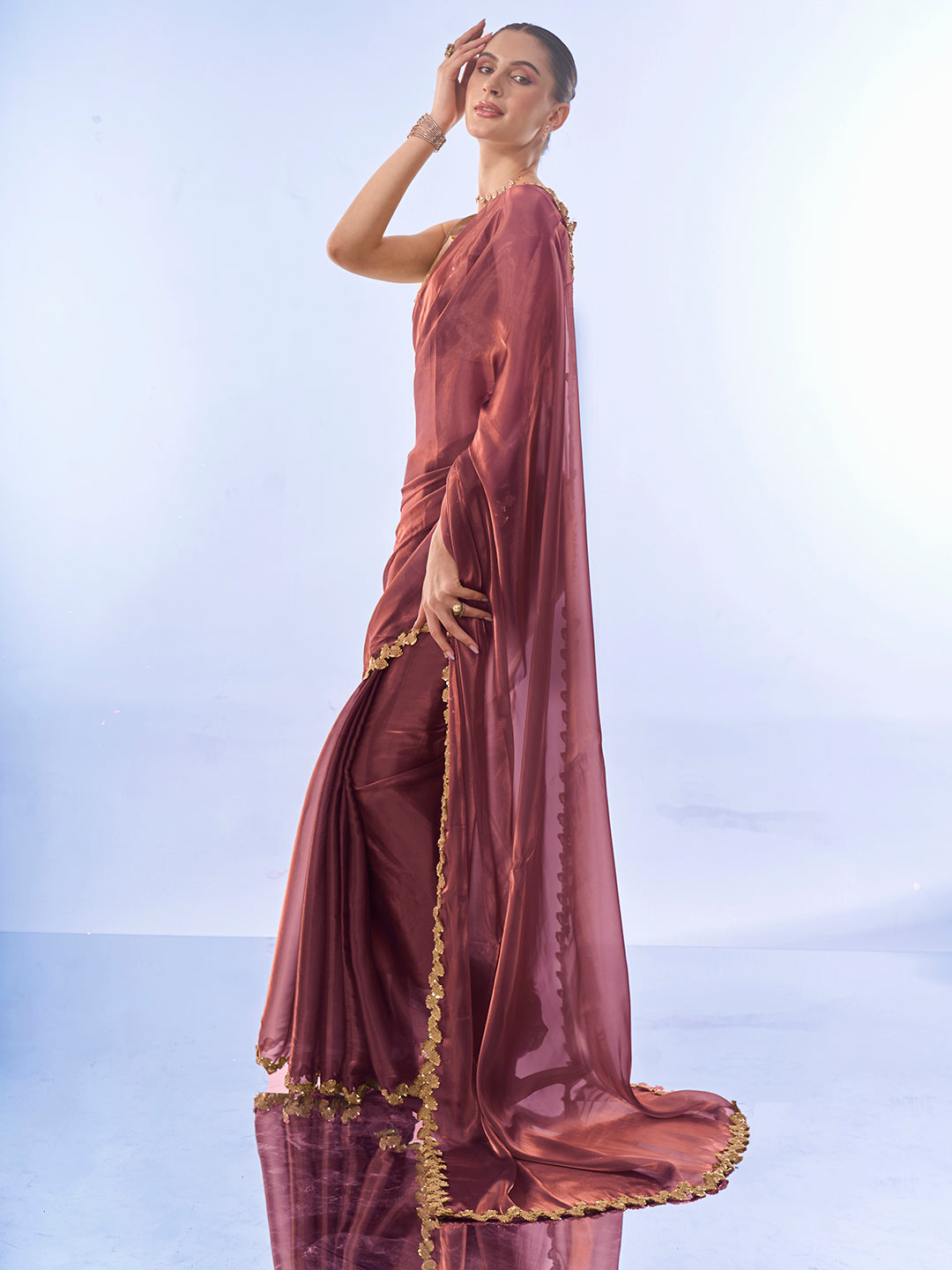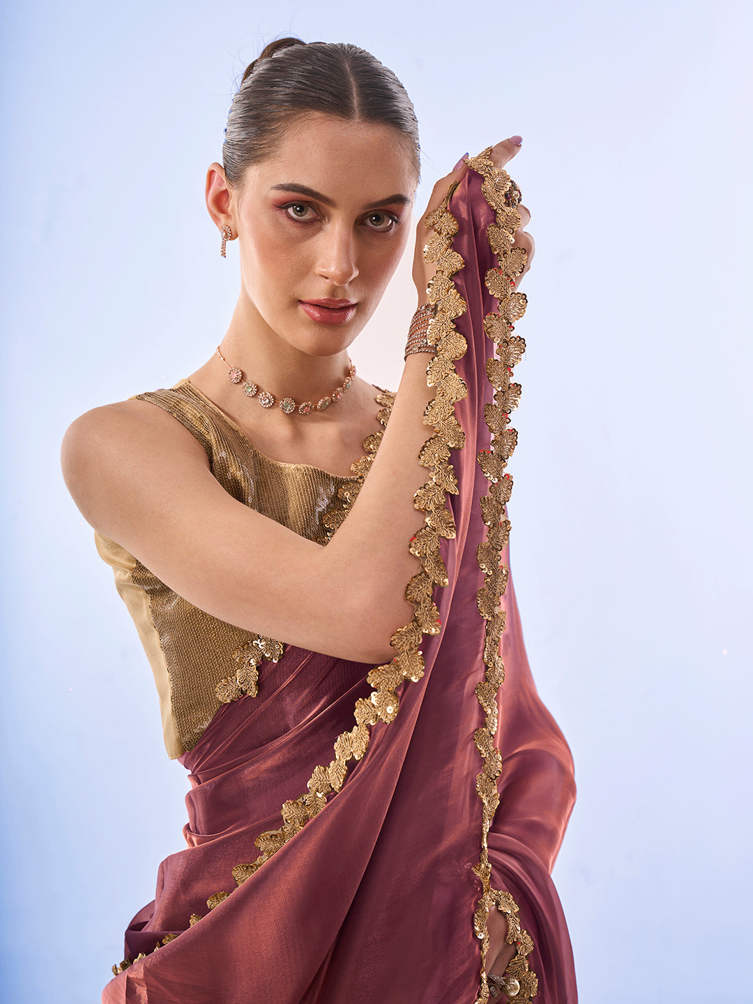 Wine Sequinned Designer Sequined Lace Organza Designer Saree 31282