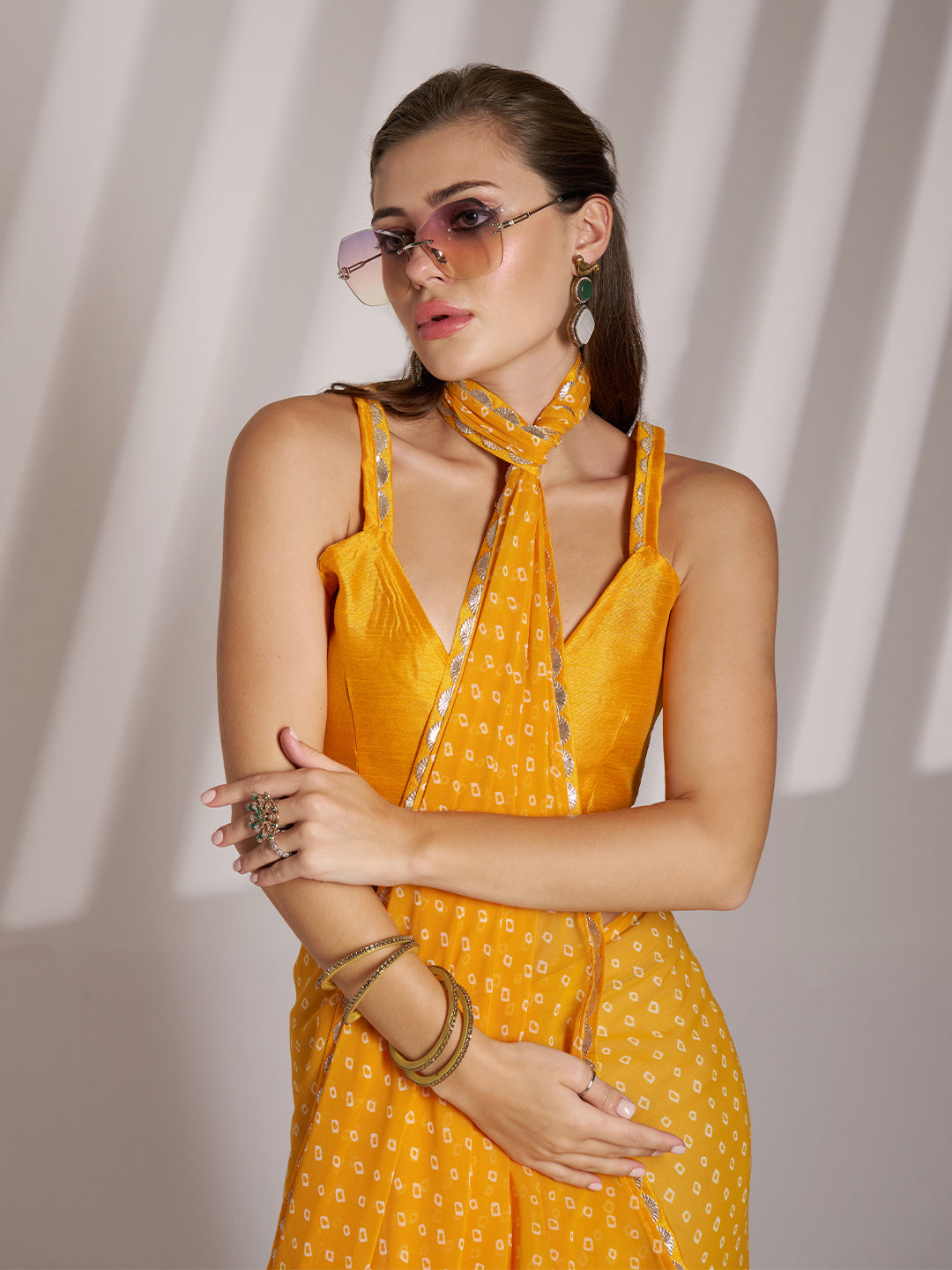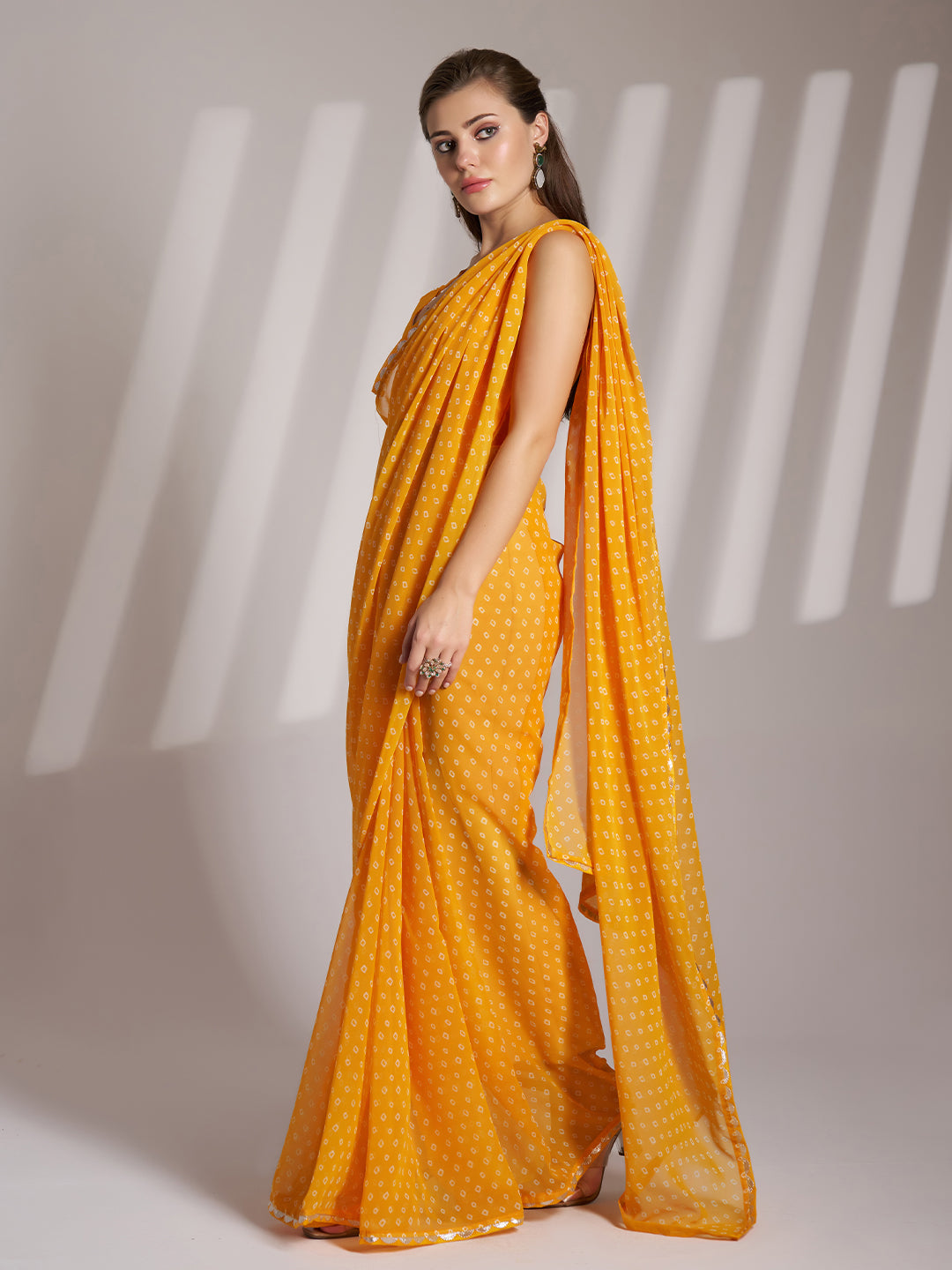 Yellow Bandhani Pure Georgette Bandhani Saree 26380