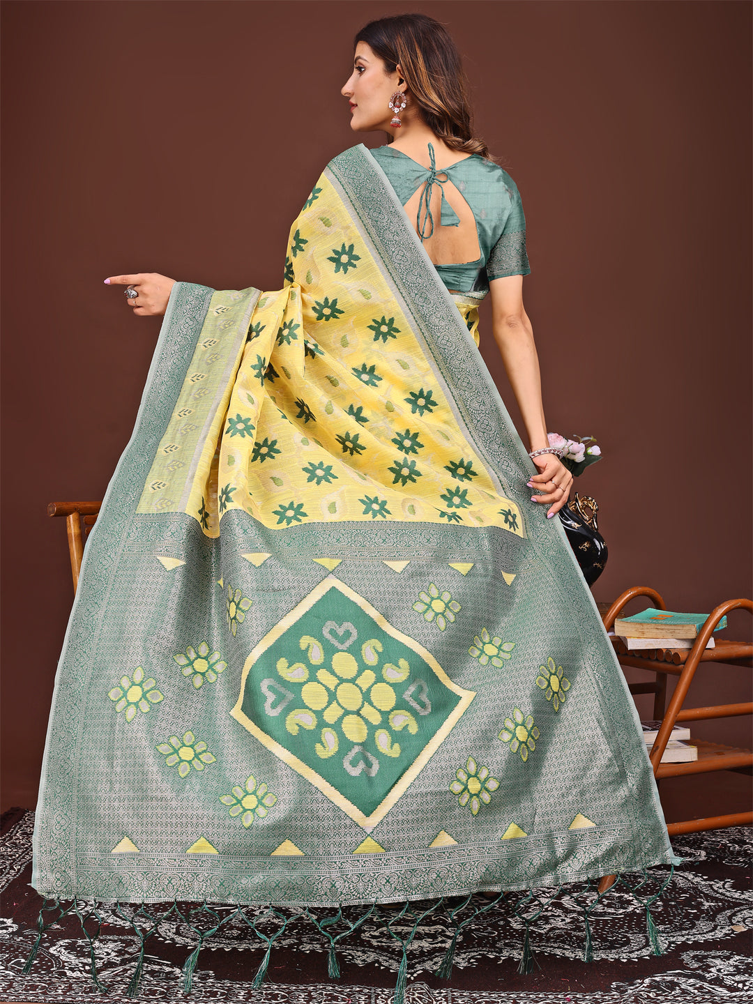 Yellow Linen Cotton Saree With Blouse Piece 83694