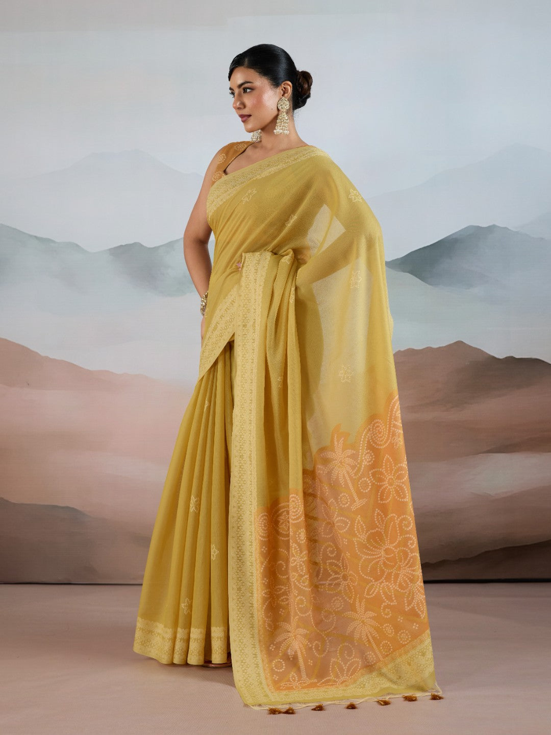 Yellow Pure Viscose Cotton Handloom Weaving Saree With Blouse Piece 14396